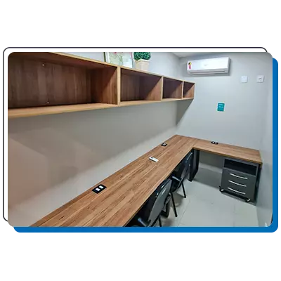 O melhor de tudo isso é que reduzimos o seu custo, pois todas as despesas do seu espeço estarão inclusas, como uma secretária, móveis planejados, ambiente climatizado, estacionamento privativo, água, luz, internet e limpeza totalmente inclusa.